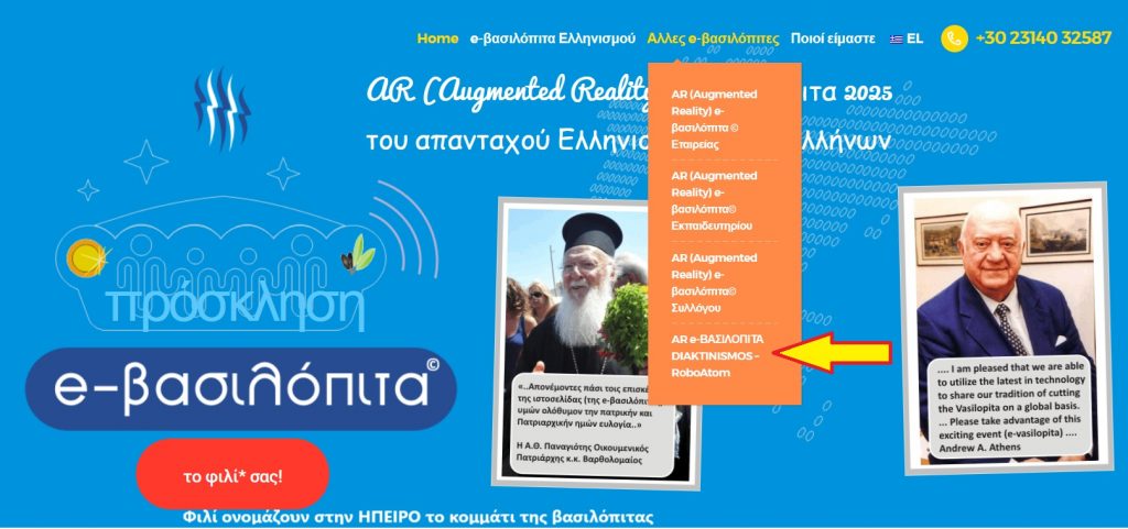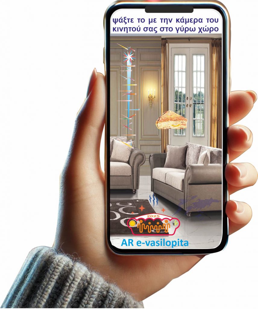 στην κοπή της ΜΟΝΑΔΙΚΗΣ ξεχωριστής (Augmented Reality) διαδικτυακής   AR e-βασιλόπιτάς μας