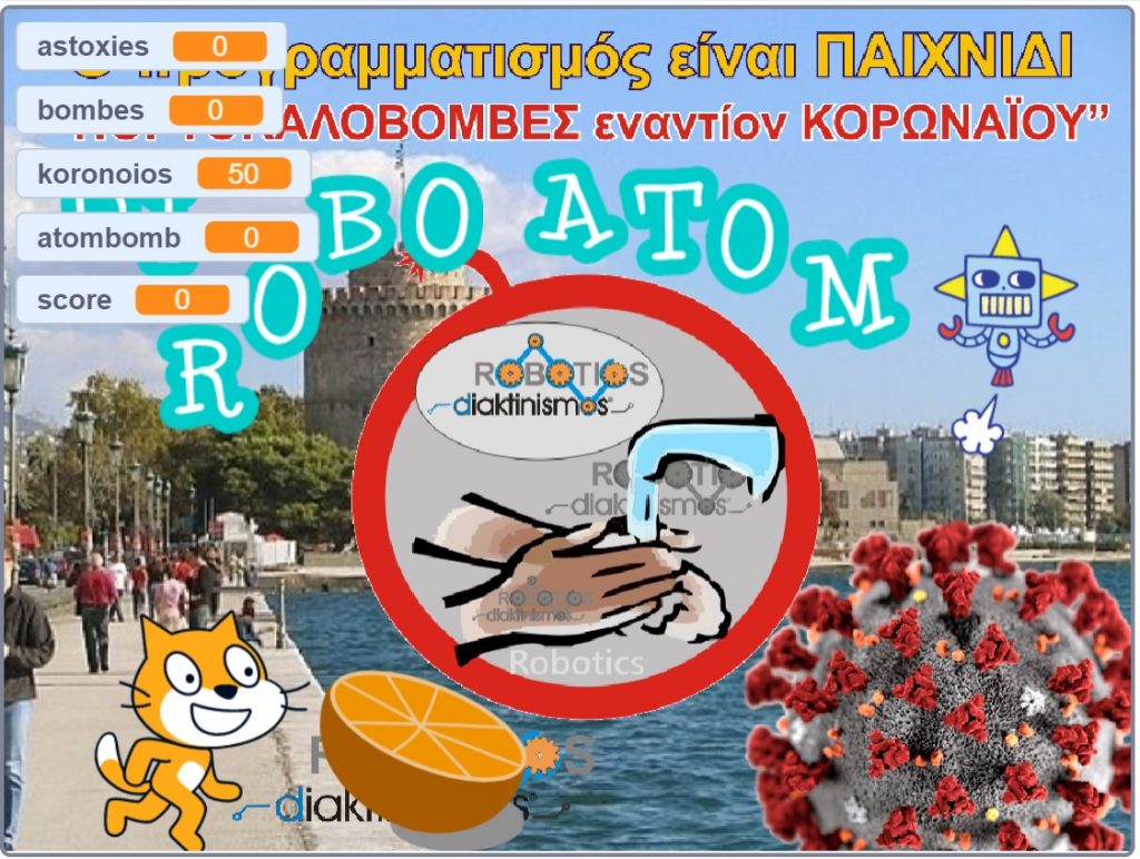 Τοποθετήστε το Ρομποτάκι (ή το mouse) λίγο πιο πάνω απο τον Κορονοϊό και πατήστε το SPACE (διάστημα).