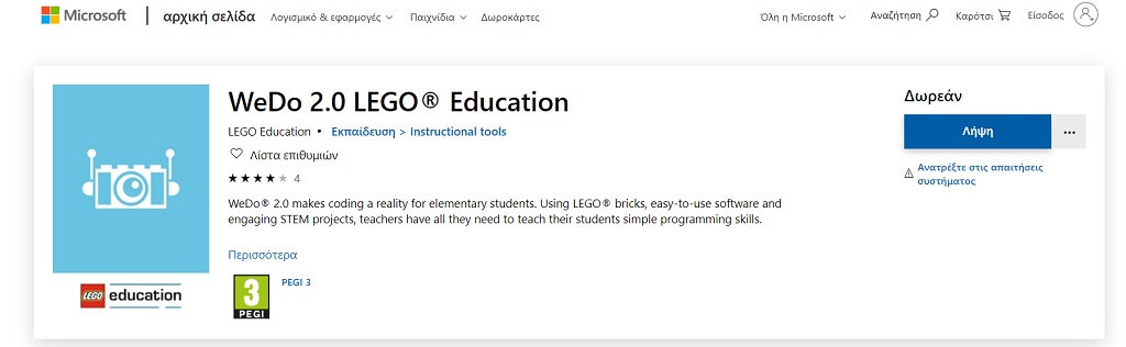 Εγκαταστήστε σε κάθε TABLET την εφαρμογή (γλώσσα προγραμματισμού) Wedo 2.0