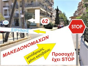 ΠΡΟΣΟΧΗ! η ΜΑΚΕΔΟΝΟΜΑΧΩΝ είναι μονόδρομος, πάει προς τα κάτω (κατηφόρα)
