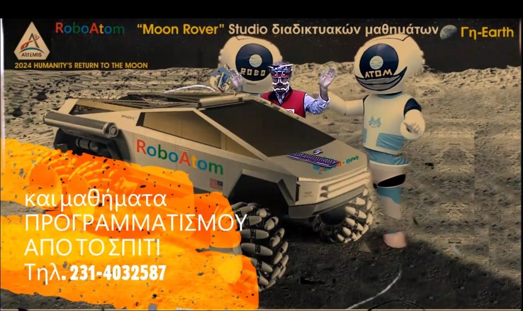 Γονείς το μάθημα του προγραμματισμού είναι ΠΡΩΤΕΥΟΝ μάθημα και στο Γυμνάσιο και στο ΛΥΚΕΙΟ και τα δύο Ρομπότ μας, Robo-bot και Atom-bot θα είναι μαζί μας στα διαδικτυακά μαθήματα προγραμματισμού στο ΝΕΟ ΜΑΣ STUDIO “RoboAtom Moon Rover STUDIO”